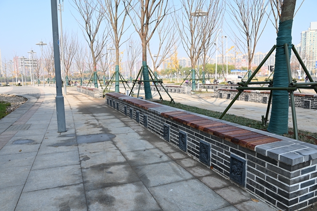 此次針對蘇州公園東北角處進(jìn)行重新栽植18株20CM的彩葉樹種的櫸樹和日本矮麥冬進(jìn)行栽植,同時為迎合蘇州街西入口整體景觀效果相協(xié)調(diào),增加更具“蘇式”韻味景觀長條形式的坐凳滿足周圍居民生活休閑。