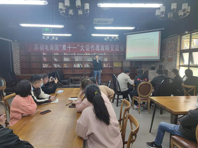2022年"雙十一"已進入倒計時,蘇宿電商園品牌商家紛紛摩拳擦掌,迎接這一全年最大爆發(fā)場。正值“雙十一”蓄水期,蘇宿電子商務產(chǎn)業(yè)園提前組織各商家進行大促作戰(zhàn)攻略交流會。
